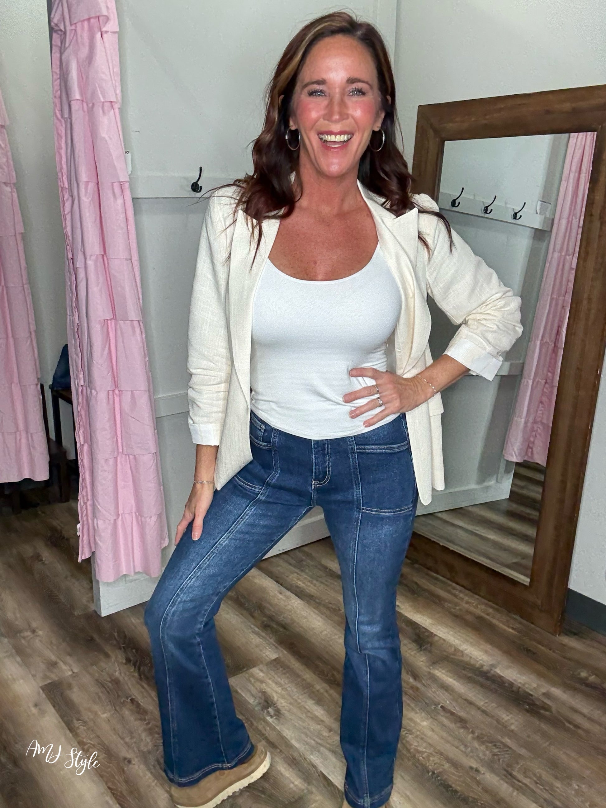 Meet your new denim obsession! The Duo Highrise features a stretchy fabric that moves with you, paired with a flattering high-rise cut and secure double-button closure. Amazing tummy control band and panel! Classic 5-pocket styling keeps things timeless, while the elastic waistline delivers that "just right" comfort all day long. Dress them up or down—these jeans are ready for anything!
