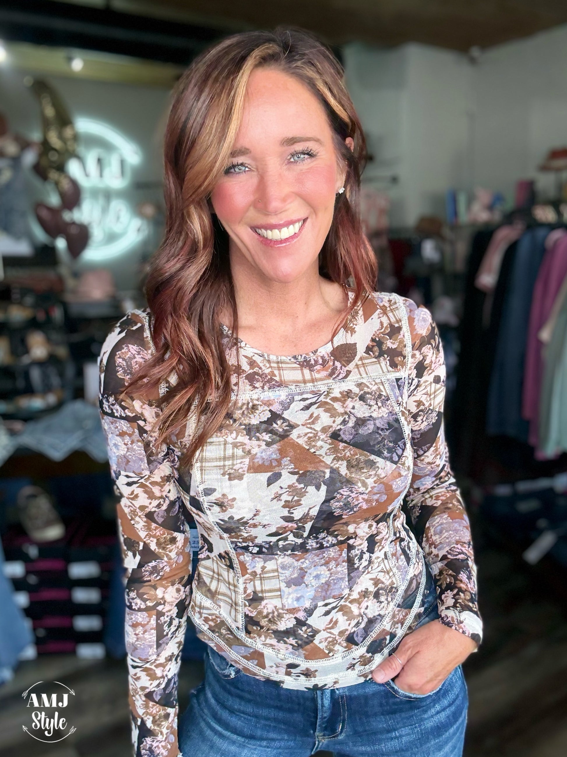 Get ready to bloom in our Flora Fusion Mesh Top! This playful patchwork of florals on stretchy mesh offers both style and comfort. With a flattering double-layered design, it's perfect for layering up your looks!