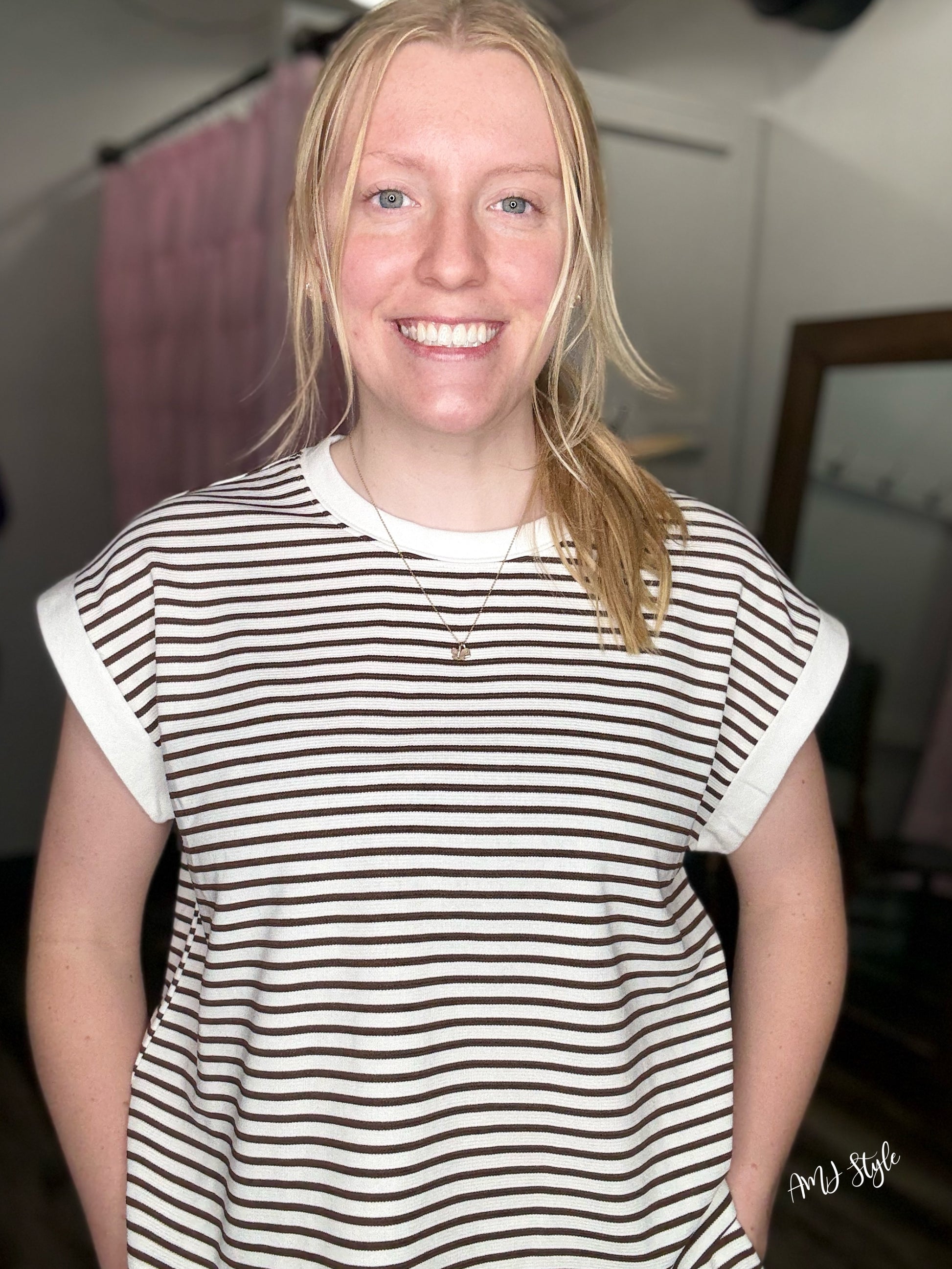 Effortless summer style meets all-day comfort in this stripe contrast trim set. The lightweight top pairs perfectly with matching shorts, featuring clean lines and a relaxed fit that works from casual outings to laid-back weekends. Quality fabric keeps you cool and comfortable, while the coordinated design makes getting dressed simple. A versatile essential for your warm-weather wardrobe!