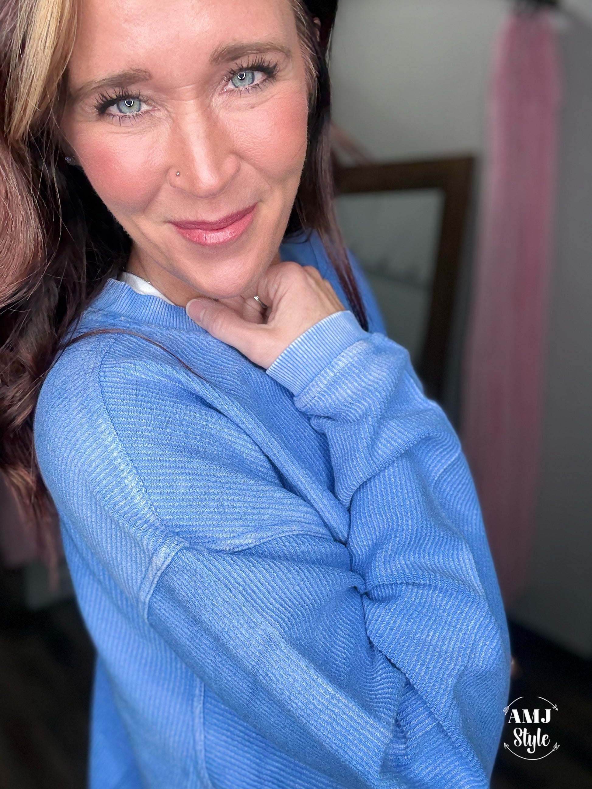 Luxury Corded Crew Sweatshirt is made of corded fabric for a soft, yet structured feel. Its vintage wash delivers rich, warm colors. Oversized fit features a ribbed crew neckline, cuffs, and hemline. Custom dyed and snow washed for softness and vintage look