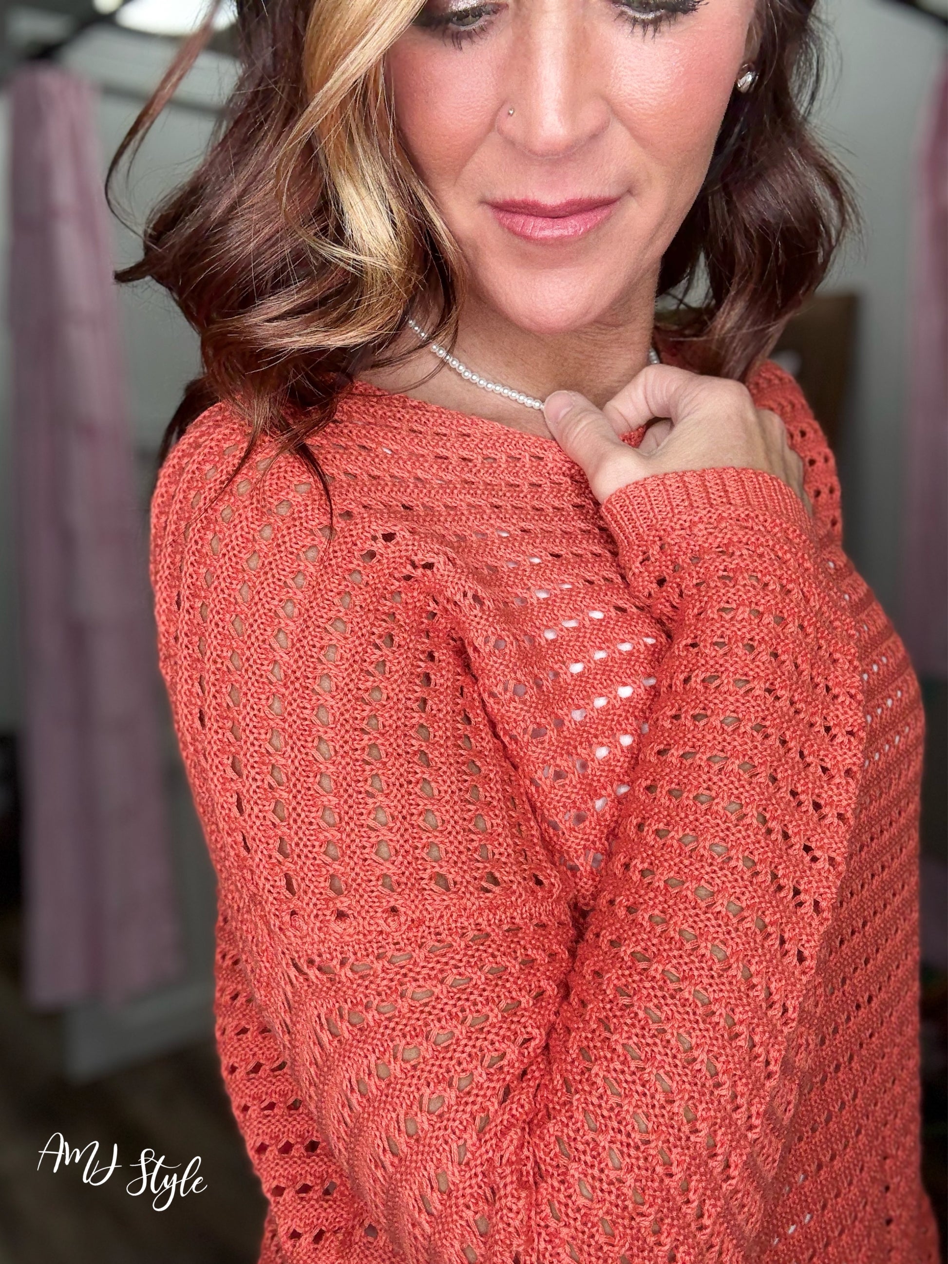 Effortless style meets comfort in this lightweight knit top. Crafted from a breathable 60% cotton and 40% acrylic blend, it features a relaxed wide crew neck and soft crochet texture that drapes beautifully. Long sleeves provide gentle coverage without bulk, making it ideal for layering on cool spring and summer days. The perfect piece for transitional weather—versatile enough to pair with everything in your wardrobe.