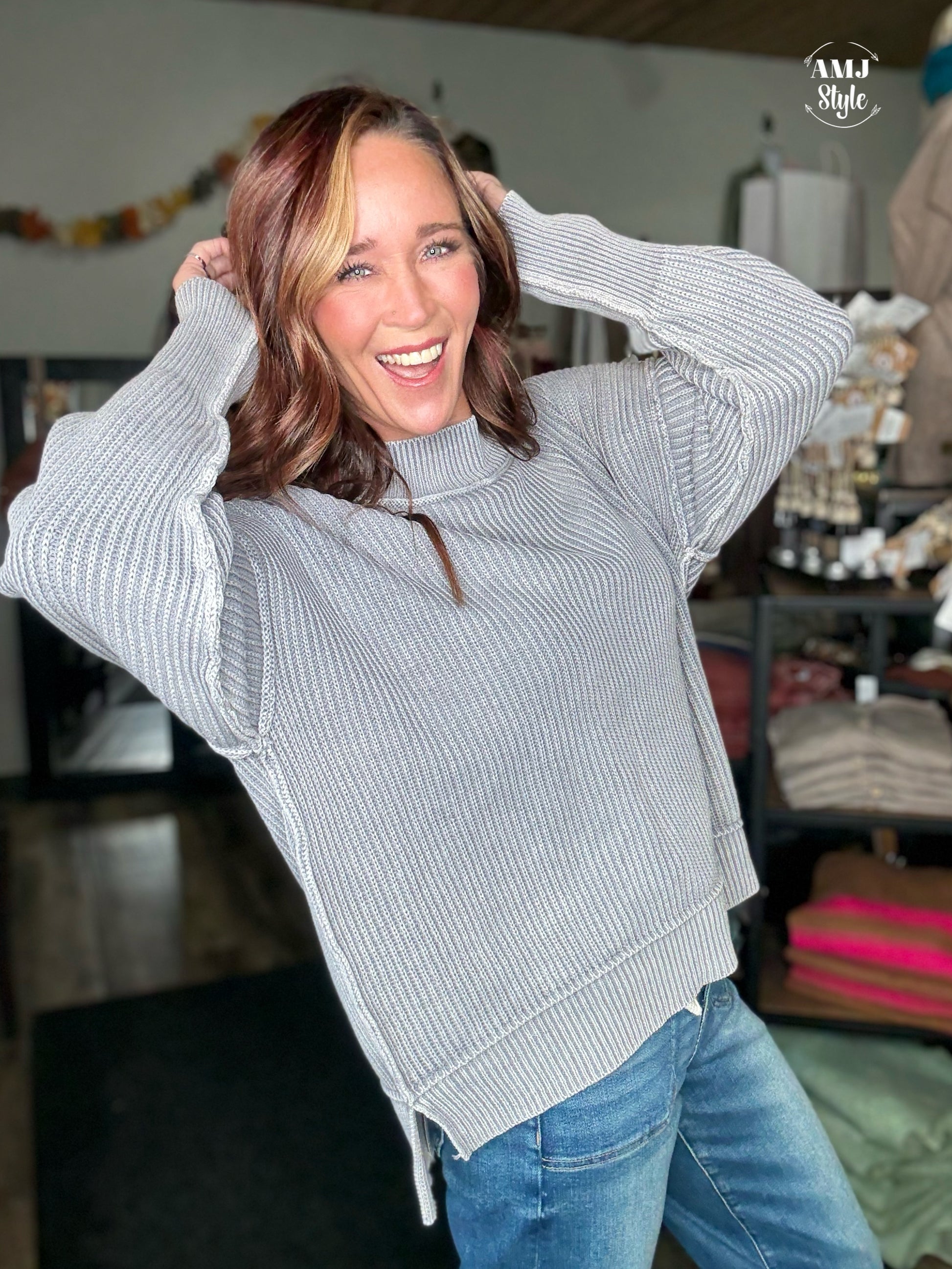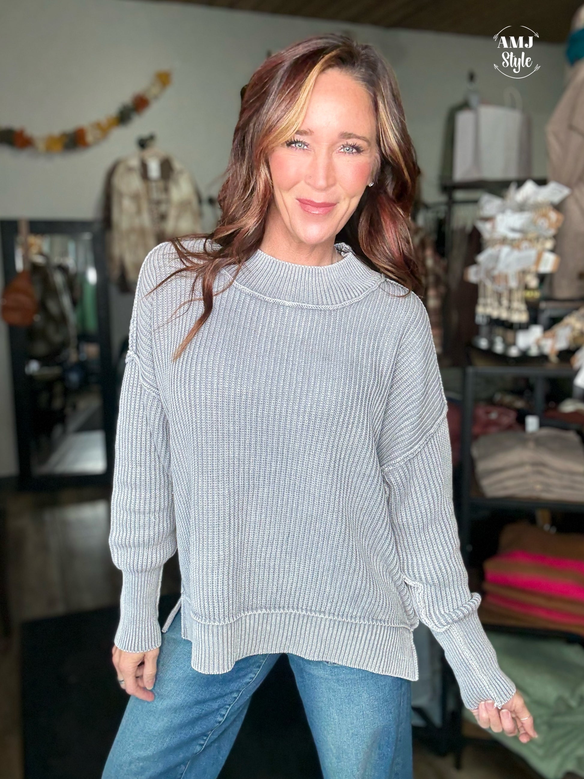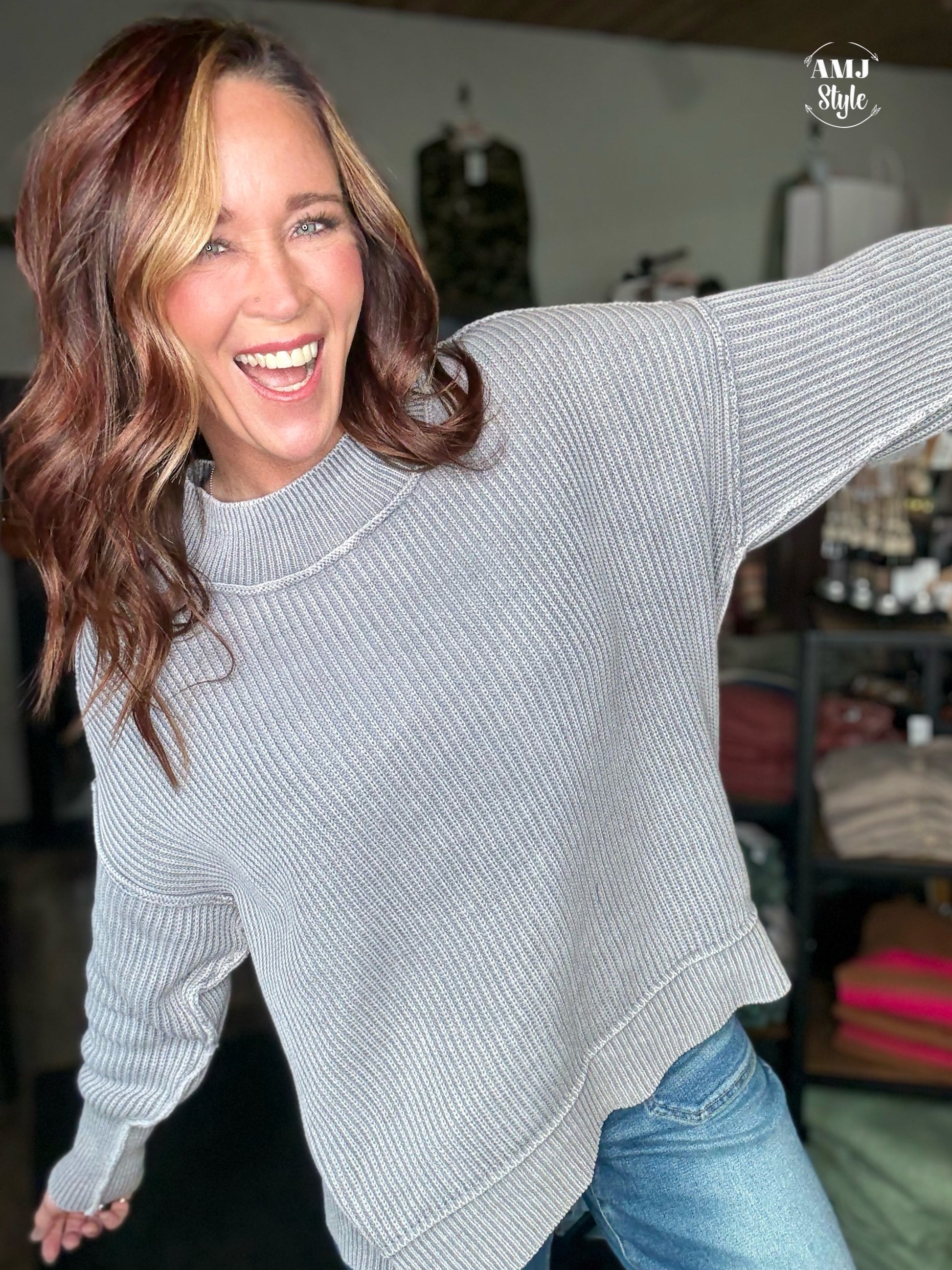 Embrace cozy vibes with this washed side slit oversized sweater. Crafted from low gauge heavyweight fabric, it offers unbeatable warmth and durability. The playful hi-low hem adds a fun twist to your casual look, making it perfect for layering and lounging in style!