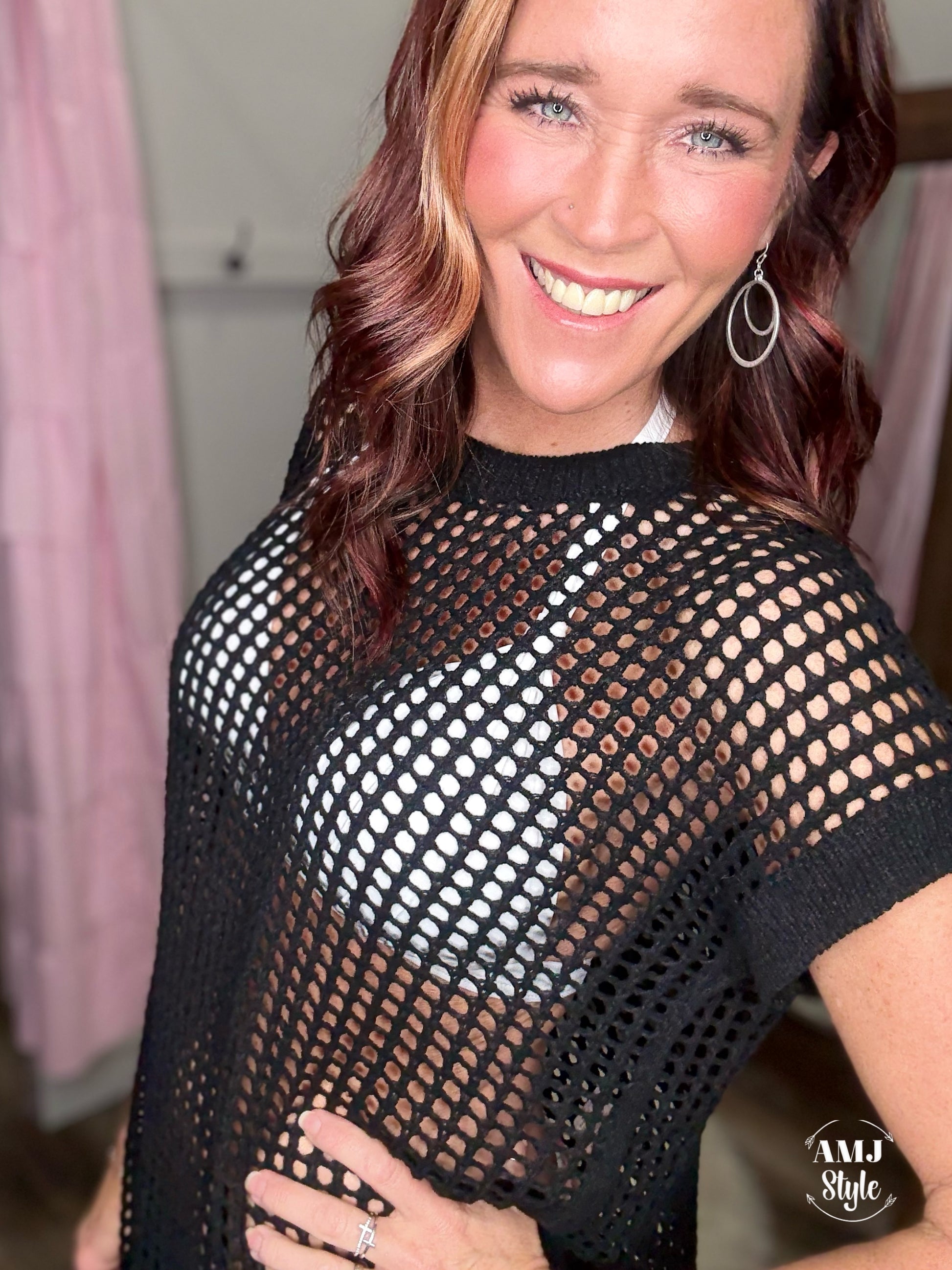 Throw on effortless cool with this drop-shoulder fishnet sweater that's basically a vibe. The open-knit design keeps things breezy and breathable, perfect for layering over your favorite swimsuit or tee. Those slouchy shoulders? Total mood. Whether you're poolside, beachside, or just vibing in style, this black coverup transitions seamlessly from water to wherever. Lightweight, laid-back, and undeniably chic—your new go-to piece for looking put-together without trying too hard!